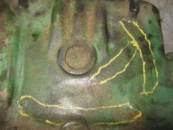 yellow arrows and the top has a few cracks in the water jacket.