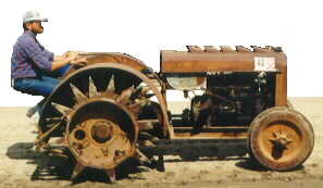 Fageols claimed the blades, or teeth, on the front wheels of the tractor enabled it to walk right over all kinds of ground, and claimed the machine could go almost any place the farmer or orchardist wanted it to go.